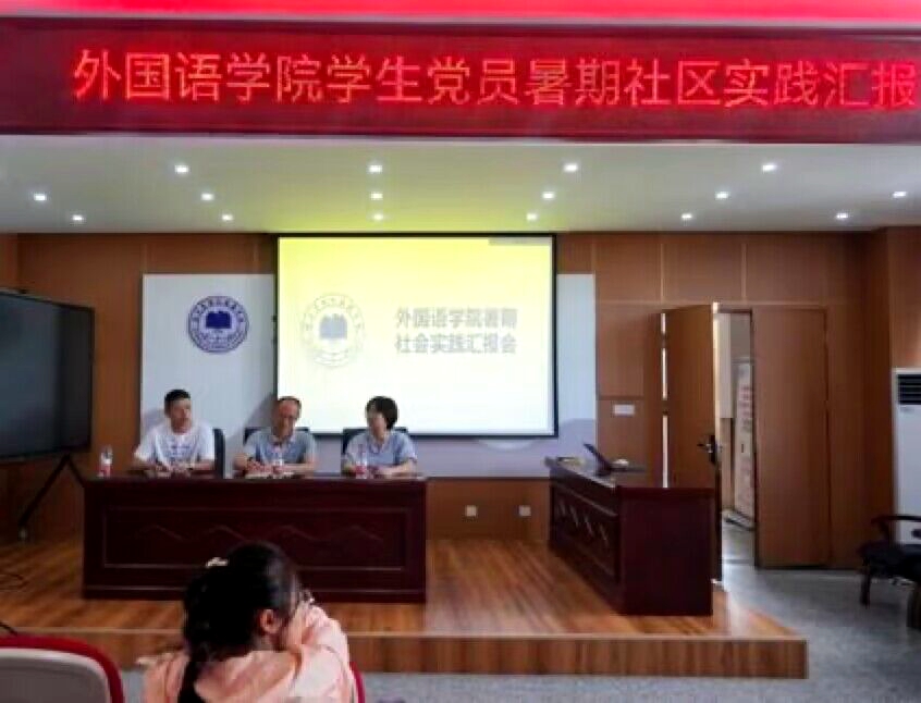 9月15日下午,外国语学院在逸夫楼一楼会议室举办了暑期社区志愿服务实践汇报活动,汇报活动由分团委书记赵婷婷主持,学院党委书记郝景东、党委副书记张亚锋出席了此次活动。