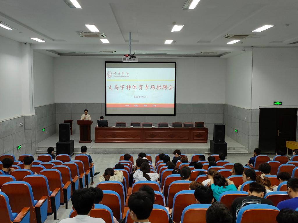 9月21日,体育学院在报告厅举办了上海巅峰减重与义乌宇特体育的专场招聘会,会上,两家招聘单位通过播放宣传片、PPT展示、面对面交流等方式向同学们介绍公司的概况、职业发展方向、人员需求以及单位晋升空间等。通过聆听宣讲,应聘毕业生在投递个人简介更为谨慎了,在关心薪资前景的同时更为详细的咨询了就业的相关事宜,少了盲目,多了理性。会后体育学院与义乌宇特体育举办了实习就业基地签约授牌仪式。
