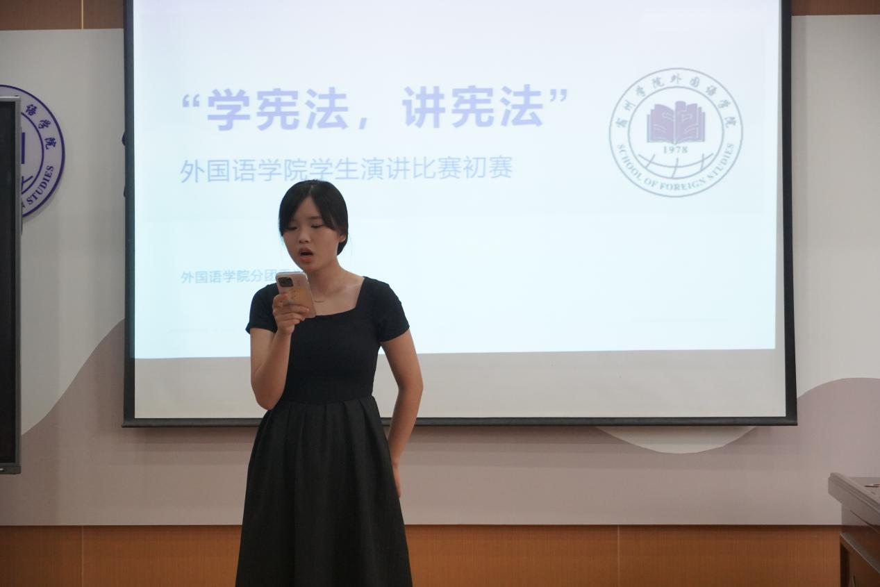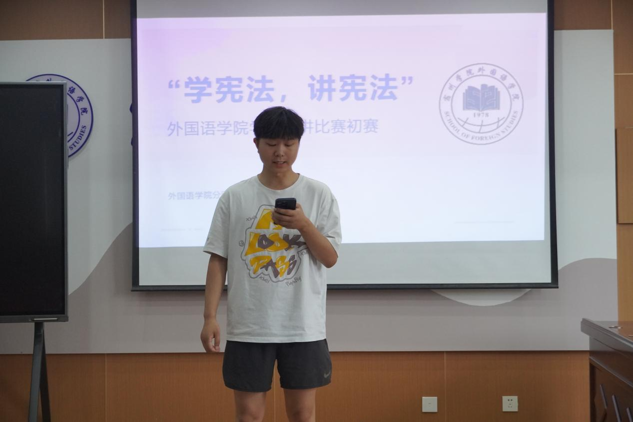 宪法浸润心田,争做普法卫士。为在广大青年中宣传普及宪法知识,弘扬宪法精神,进一步助力宿州学院法治文化建设,外国语学院于9月23日下午在逸夫楼一楼会议室举办“学宪法,讲宪法”比赛。我院学子积极参与,展示他们对公正法治的理解和热爱。