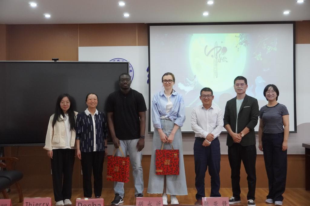 外国语学院与国合处先后向外教和现场的同学们致以中秋的祝福,勉励同学们认真学习,提升自己的跨文化交际意识与能力。国合处、外国语学院共同向外籍教师赠送了中秋月饼,表达了诚挚的节日祝福,希望外籍教师在中国工作顺利、生活愉快。