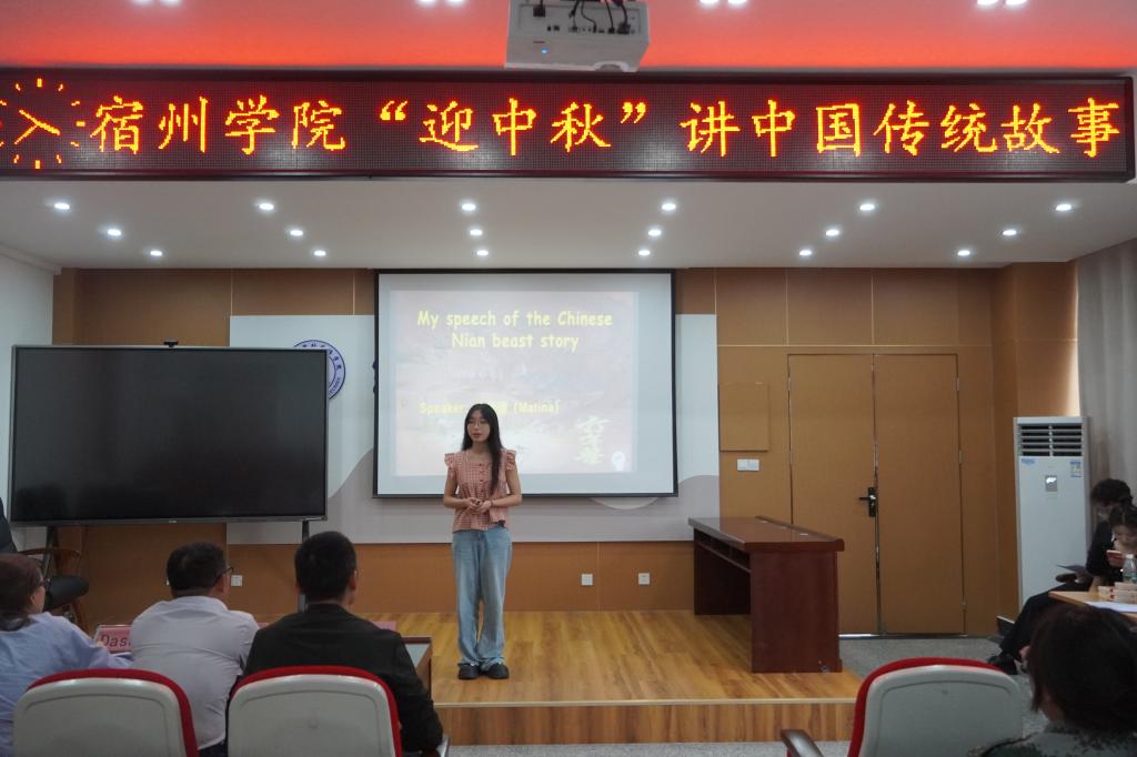 为庆祝中秋、国庆双节来临,提升学生的英语综合表达能力,9月27日下午,国际交流与合作处和外国语学院在逸夫楼一楼会议室联合举办了第五届迎中秋讲中国传统故事活动。外国语学院党委副书记张亚锋、副院长胡永近、国际交流与合作处李庆照以及在我院任职的外籍教师代表参加活动,活动由外国语学院分团委书记赵婷婷主持。