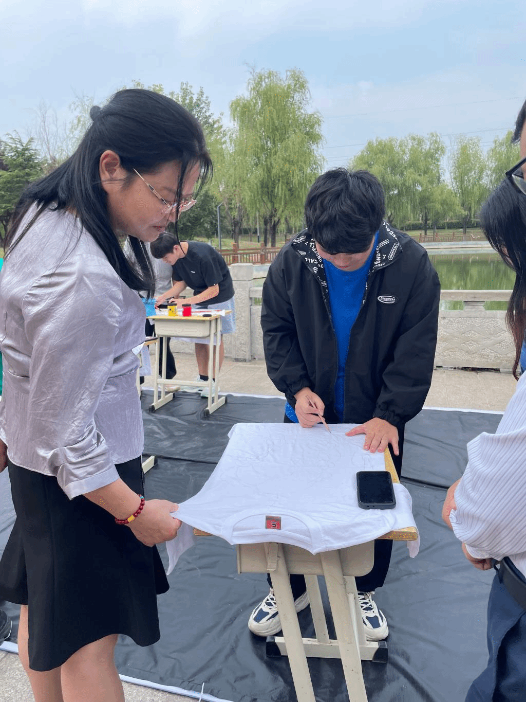 郝景东指出,在全国上下开展学习贯彻习近平新时代中国特色社会主义思想主题教育的背景下,我们伟大的祖国将要迎来74周年华诞,同学们通过激发创意灵感和爱国情怀,描绘美好图案迎接国庆节的到来,既是一次特色鲜明的实践活动,也是彰显校园文化的良好契机。他勉励同学们加强学习,努力提升自身综合素质,立志做有理想、敢担当、能吃苦、肯奋斗的新时代好青年,让青春在为祖国、为人民的不懈奋斗中绽放绚丽之花。