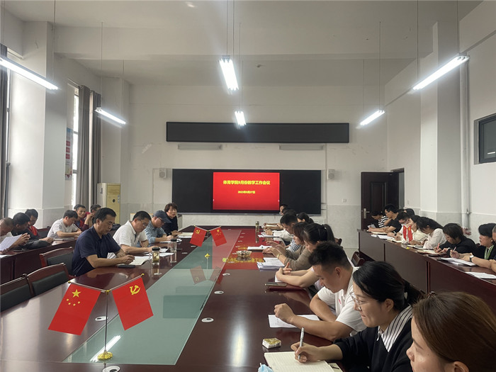 9月27日中午12:30,体育学院在体育馆A104会议室召开9月份教学工作会议。体育学院党委书记李高,党委副书记、院长白明,党委副书记王德玉,教学副院长陈芳芳,全体教职工参加会议。会议由体育学院党委书记李高主持。