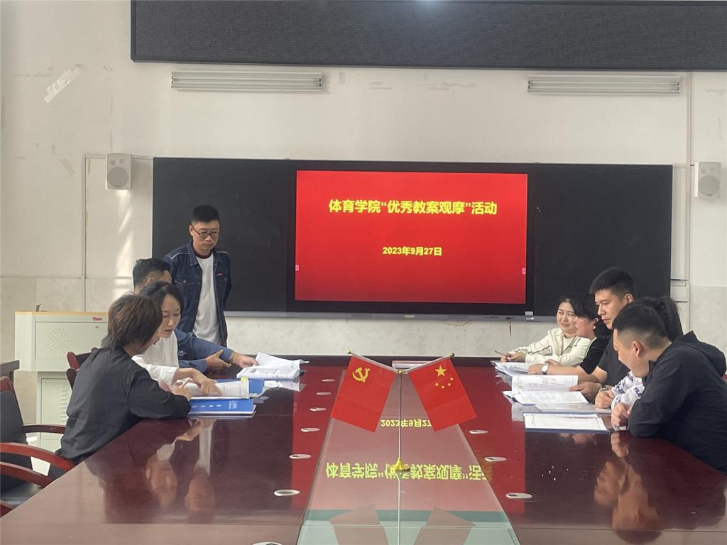为了提高青年教师教案撰写水平,9月27日,体育学院开展青年教师“优秀教案观摩”活动。此活动分为两个环节,第一个环节是体育学院从商学院、马克思主义等学院借来校级教案比赛一等奖的教案,在体育学院104会议室展开优秀教案观摩活动。第二个环节是体育学院组织青年教师去生物与食品工程学院进行“优秀教案观摩”活动。