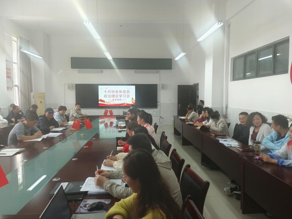 2023年10月11日中午,体育学院召开十月份全体党员、教职工政治理论学习会,体育学院全体教师参加学习会。学习会由李高主持。