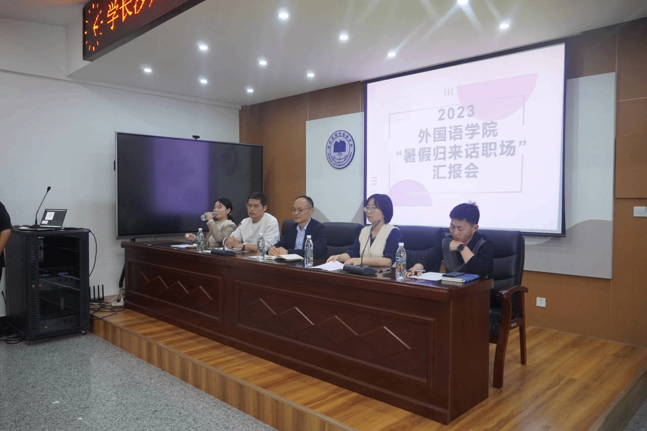 为帮助同学们端正就业观念、做好职业规划,发挥高年级学生朋辈榜样作用,外国语学院于10月11日下午在逸夫楼一楼会议室开展学长沙龙:“暑假归来话职场”活动,21级和22级部分受助困难学生向大一新生展示了暑期的职场体验。活动由分团委书记赵婷婷主持,学院党委书记郝景东、副书记张亚锋、学生事务管理科科长宋皓以及23级辅导员杨哲担任评委。