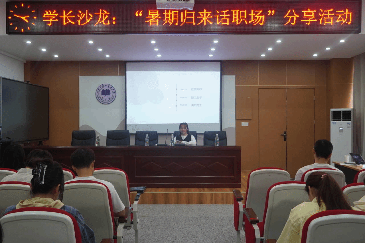 报告会上高年级同学分享了他们在暑假期间的所思所想所为,有的同学去到家乡担任村委会团委副书记,有的去到实体门店兼职,也有的同学走进社区开展支教活动,帮助留守儿童的同时也对教师这一职业有了更深刻的认知。这些经历不仅激发了他们学习动力,也使他们对未来的学习和工作有了更明晰的目标。
