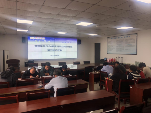 为进一步加强本科毕业论文各环节的过程管理和提升论文质量,切实做好毕业论文选题工作,经过学院工作安排,10月11日下午,管理学院实习实训楼C301会议室开展2024届本科毕业论文选题第二轮论证工作。本次论证会是在2023年9月首轮论证及修改完善的基础上进行的,院教学督导组成员、学术分委会成员、各教研室主任以及全体博士教师积极参与,会议由副院长(教学)宋徽主持。