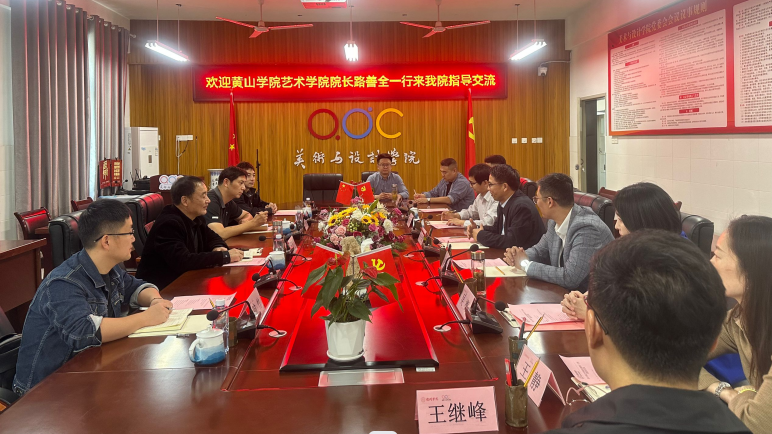 2023年10月17日下午,黄山学院艺术学院院长路善全一行四人莅临我院指导交流,学院党委副书记、院长许兴海及科级干部、教研室主任参加会议,会议由学院党委副书记纪委书记边洪强主持。