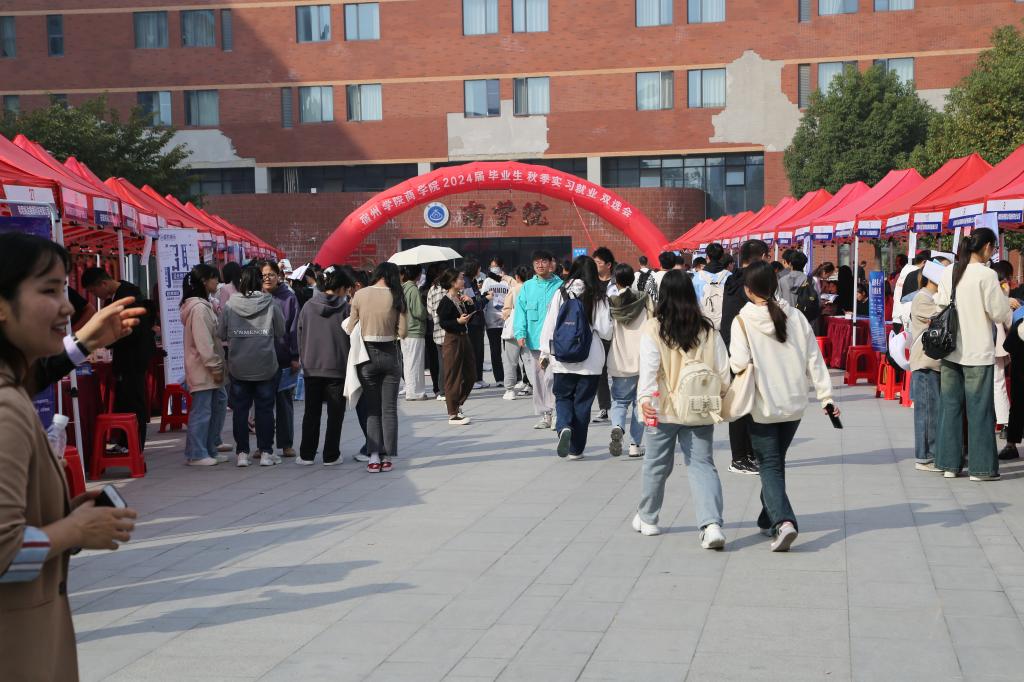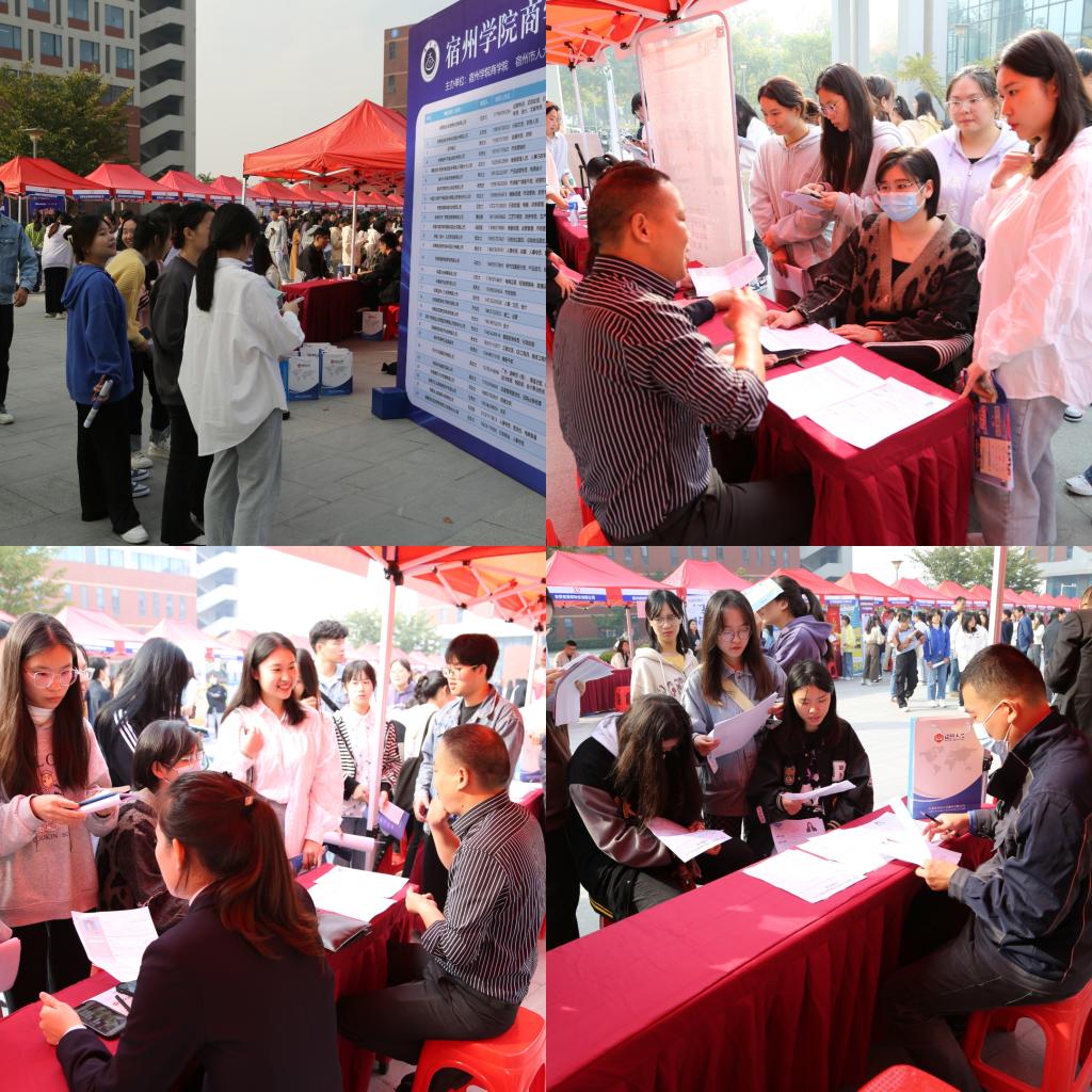 为满足在校学生实习就业的切实需要,搭建在校学生与用人单位的实习就业双选平台,10月25日,宿州学院商学院2024届毕业生实习就业供需双选会在实训楼B楼党建广场举行。
