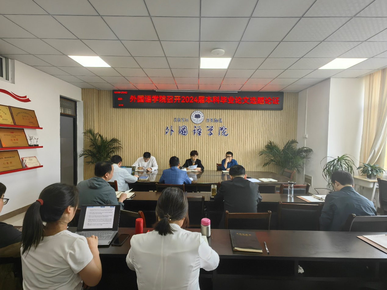 为切实保证2024届本科毕业论文质量,做好毕业论文工作,外国语学院于10月30日召开了毕业论文选题论证会。外国语学院院长张雁凌、副书记张亚锋、副院长胡永近、教研室主任及教学分委会成员参会,会议由院长张雁凌主持。