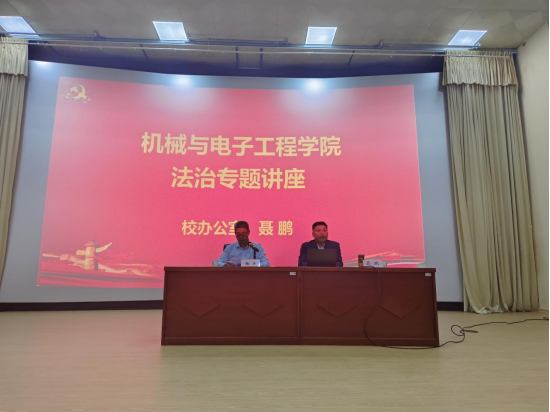 为了进一步加强法治教育,增强学生的法治意识和法治观念,提高学生的法律意识和自我保护能力,11月1日,机电学院邀请学校法治科科长聂鹏在大学生活动中心为学生开展了法治专题讲座。机械与电子工程学院2023级全体学生参加了讲座,讲座由学院党委书记杨杰主持。