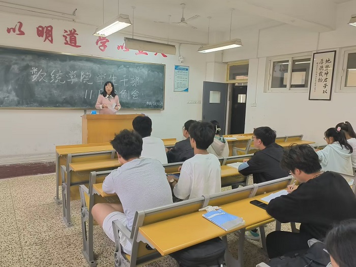 为了加强学生干部思想政治素养,更好的开展学生工作。11月9日下午16:30,数统学院在东教学楼A120教室举办学生干部11月例会,出席本次例会有分团委书记刘静,20级、21级、22级、23级各班级团支书,分团委负责人以及学生会主席团成员。