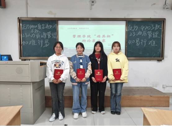 赛后,评委分别对双方辩手进行了精彩点评,在辩论技巧方面给予了指导,依据评委投票打分结果,23酒店管理班级代表队最终获得本次辩论赛冠军,23人力资源管理班级代表队获得亚军。