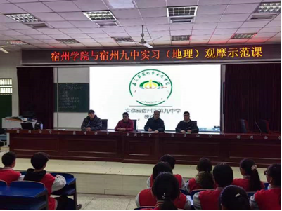 为践行“学生中心、产出导向”理念,引导毕业实习生“践行师德、学会教学、学会育人、学会发展”的师范实践技能,2023年11月13日下午,环境与测绘工程学院方刚教授、苏海民副教授和李福建老师赴宿州市第九中学参加地理观摩示范课活动。宿州市第九中学教务主任朱寿华、地理教研组、七年级9班学生和我院目前正在九中进行实习的全部学生参加了该项活动。
