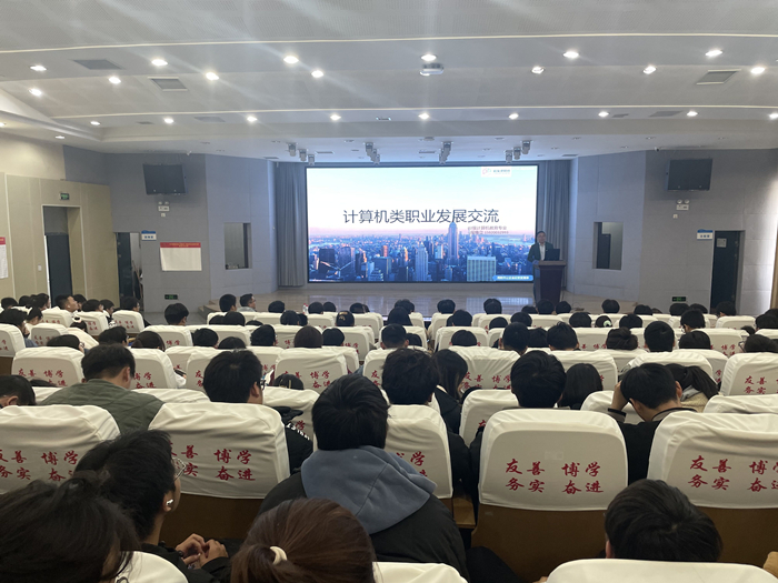 段焕立为深圳市管家婆网络服务有限公司总经理,他通过在计算机行业18年的工作经验,结合公司招聘要求、人才培养体系从时代发展趋势、软件应用的市场机会和给大学生的职业发展建议三个方面做了交流分享,并对如何进行职业生涯规划和把握计算机发展的机遇和挑战给学生们提出了可行的方法。最后,他希望学生们能够“保持初心、保持热爱,坚持学习,做难而正确的事情”,现场同学都受到极大教诲,掌声不断。