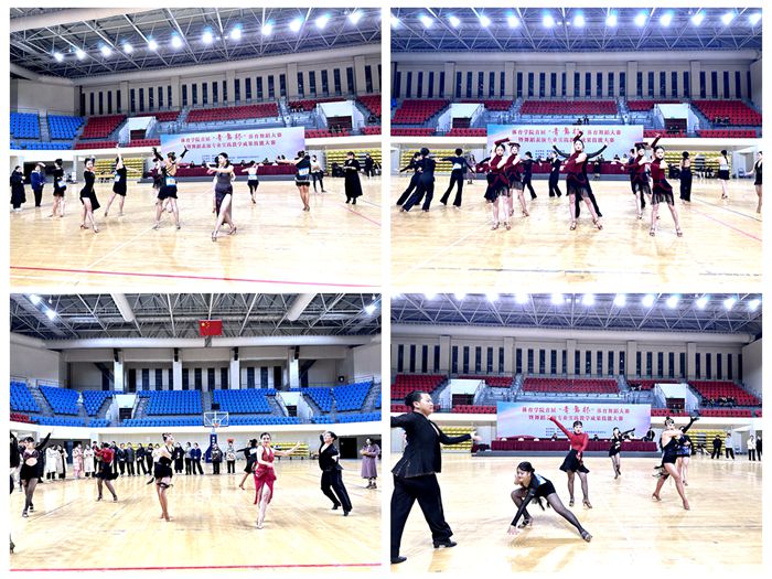 为深入学习贯彻习近平新时代中国特色社会主义思想,加强创新实践能力,培养提升应用型人才培养质量,让学生在实践中长才干、强信念。体育学院结合本学期舞蹈表演专业实践周,扎实推进实践教学。11月23日晚,由体育学院主办,宿州学院健身操舞社团承办,宿州学院学生团体联合会、体育学院实习实训中心协办的体育学院首届“青舞杯”体育舞蹈大赛暨舞蹈表演专业实践教学成果技能大赛在宿州学院体育馆举行,体育学院21级舞蹈表演、22级舞蹈表演、23级舞蹈表演共66人参赛,分个人和团体共5个项目进行角逐。