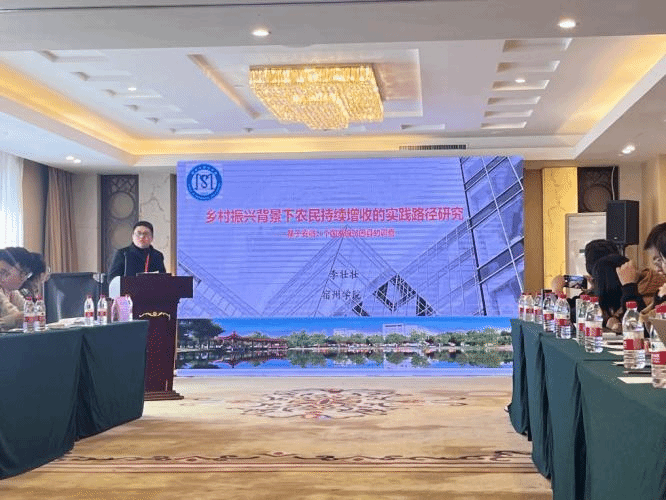 李壮壮博士在分会场二作了题为《乡村振兴背景下农民持续增收的实践路径研究》的主旨报告,围绕乡村产业振兴和新型农业主体进行了汇报发言。
