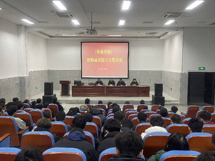 为深入贯彻全国教育大会精神和新时代全国高等学校本科教育工作精神,提高体育学院学生教师资格证面试比例,体育学院于12月4日下午13:00在体育学院阶梯教室邀请郭强和范浩老师作为主讲人,召开“教师面试技巧专题讲座”,体育学院党委副书记、院长白明,教学副院长陈芳芳及部分教师出席此次讲座。