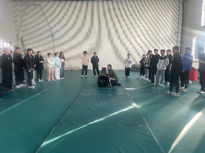 12月7日下午,体操专项教师李高、宋荣凯,在体育学院体操馆为即将参加教师资格证面试的备考考生进行了体操专项技能指导。从肩肘倒立、骑撑后倒挂膝上、分腿坐前滚翻成分腿坐、单杠骑撑后倒屈膝上、横箱分腿腾跃、纵箱分腿腾越、侧手翻、支撑跳跃、俯平衡、鱼跃前滚翻、前滚翻站立等方面进行了详细的讲解,对每一个动作要领和重难点进行了针对性讲解,对易犯错误和纠正方法进行了强调。备考学生们表示受益匪浅,不仅巩固了学习效果且增强了同学们对教资面试的自信心。