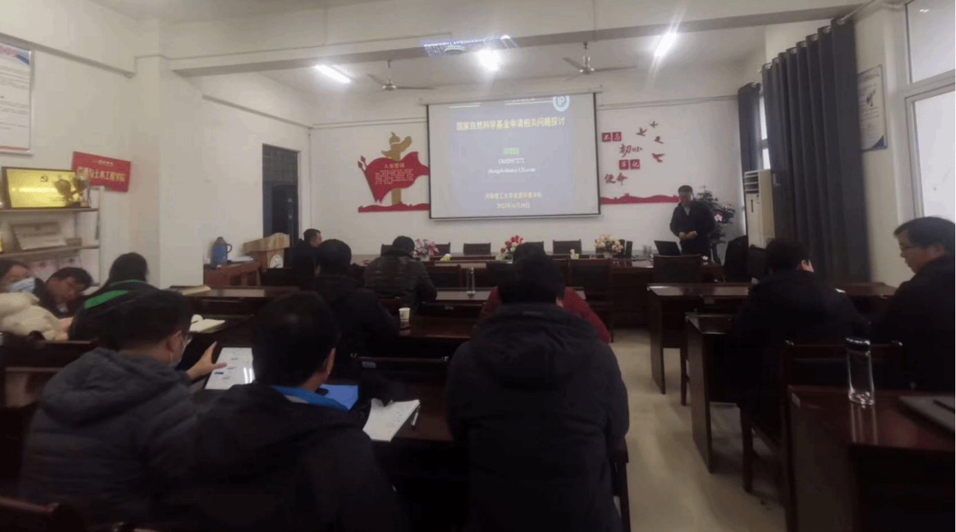 为做好2024年度国家自然科学基金申报工作,切实提高学院青年教师撰写基金申请书的水平和质量。12月11日,应资源与土木工程学院邀请,河南理工大学郑德顺教授来我院作专题辅导报告,报告会在工A402举行,资源与土木工程学院院长陈松、副院长王明梁及资源与土木工程学院全体教师参加了本次专题报告,报告由陈松主持。