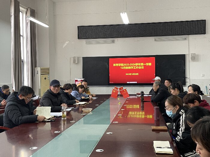 12月20日,体育学院在会议室A104召开12月份教学工作会议,体育学院党委书记李高,党委副书记、院长白明,教学副院长陈芳芳及全体教职工参加会议。会议由李高主持。