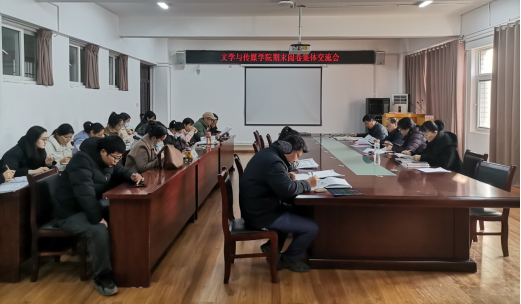 为促进学院期末各项工作顺利开展,1月12日,文学与传媒学院在教A303召开全体教师会暨期末阅卷集体交流会,党委书记王金岭,党委副书记、院长李月云,党委副书记、纪委书记刘影,副院长李娟、满建及全体教师参会。会议由李月云主持。