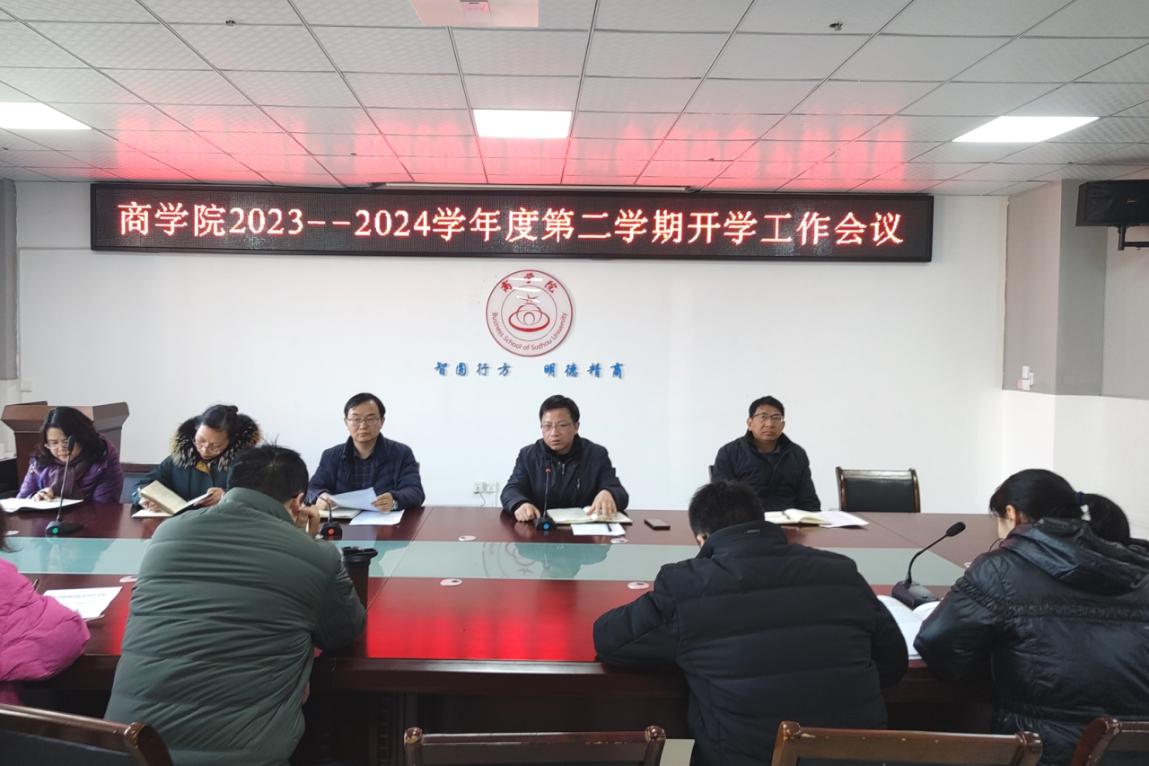 为全力保障开学工作平稳有序开展,提前谋划学院各项工作,2月26日下午,商学院在实训楼B517会议室召开2024年春季学期开学工作会议,学院领导班子及全体教职员工参加会议,会议由党委副书记、院长刘红军主持。