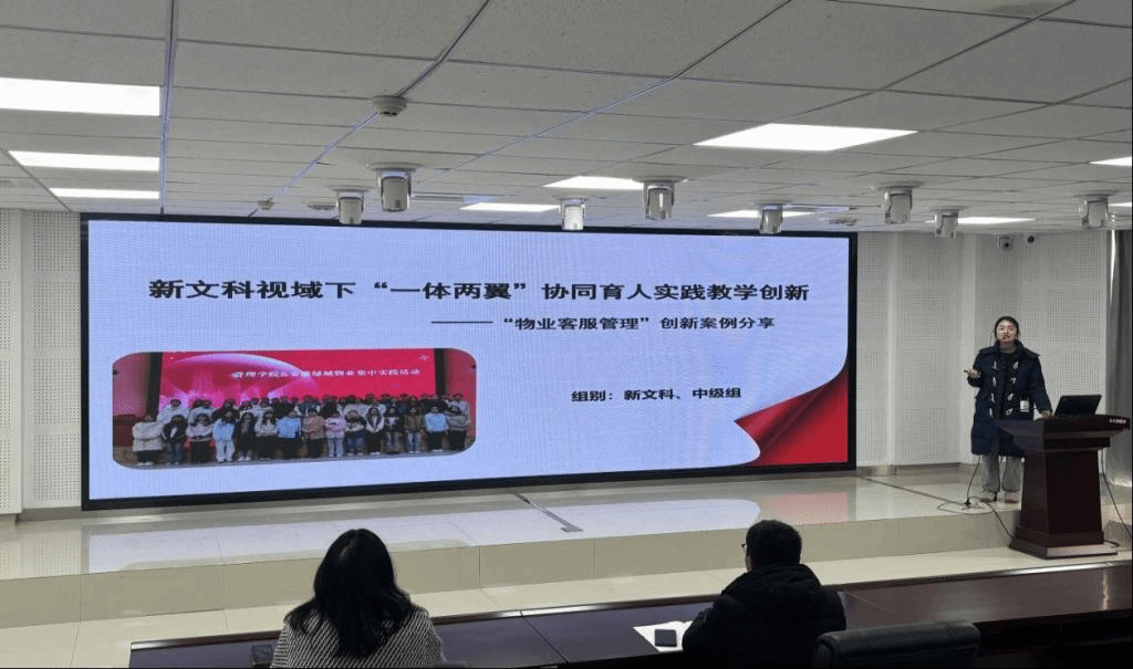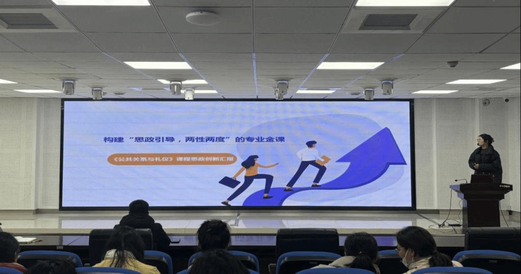 本次示范课由宿州学院第四届教师教学创新大赛非课程思政组一等奖获得者沈甜甜老师和课程思政组一等奖获得者朱述美老师讲授。沈老师在教学中秉承“以学生为中心”的教学理念,从教学方法、课堂组织、授课技巧等角度对《物业客服管理》课程进行了设计,多维度多渠道调动学生的积极性。同时,注重课程思政的开展,增加中国物业案例的教学内容以贯彻“以人为本”的教育教学观。针对教学过程中出现的“痛点”问题,尝试使用新文科视域下“一体两翼”协同育人实践教学创新理念,大力推进课堂改革。朱老师的《公共关系与礼仪》课程主要从重构模块化教学内容、思政元素融入课程内容等两方面着手,充分培养学生解决复杂问题的综合能力和高阶性思维。利用“四融六式”教学方法,持续完善课堂教学组织形式,以此提升学生学习意愿和学习兴趣,并尝试将“SKIP”循环教学法全程融入思政教育,实现学生课程理论知识和德育素养的双重提升。