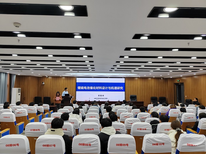 熊教授做题目为“锂硫电池催化材料设计与机理研究”学术讲座,指出在众多新型电池体系中,锂硫电池因具有高的能量密度,价格低廉,环境友好等优势,被认为是最具应用潜力的下一代高能量密度电池新体系。但也同时存在着正极侧缓慢的反应动力学,以及多硫化物穿梭效应等问题,制约了其进一步发展。针对此关键问题,熊教授介绍了三种解决策略:一是增加活性位点的数量;二是优化其配位环境;三是实现活性位点的循环利用,为锂硫催化化学和高性能锂硫电池体系的构筑提供了有效思路和解决方案。