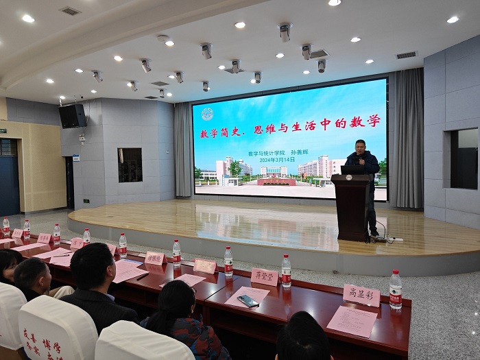 特邀嘉宾孙善辉教授做了《数学简史、思维和生活中的数学》报告,孙教授从河谷文明及其数学的发展和融合、现代大学数学与其文化背景、新兴技术领域中的数学等几个方面介绍了数学的发展历史,同学们认真倾听,思绪遨游在浩瀚的数学文化海洋里。