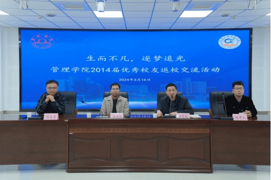 情牵母校忆芳华,向光而行筑未来。为充分发挥优秀校友的榜样引领作用,帮助同学们科学规划职业生涯,激发同学们的学习热情和进取心,3月16日下午,管理学院于实训楼C103举办优秀校友返校交流活动。2014届人力资源管理专业优秀校友赵孝文和程道海应邀回访母校,学院党委副书记、院长韩传龙,党委副书记张增林出席活动,学院各年级人力资源管理班学生参加本次交流活动。