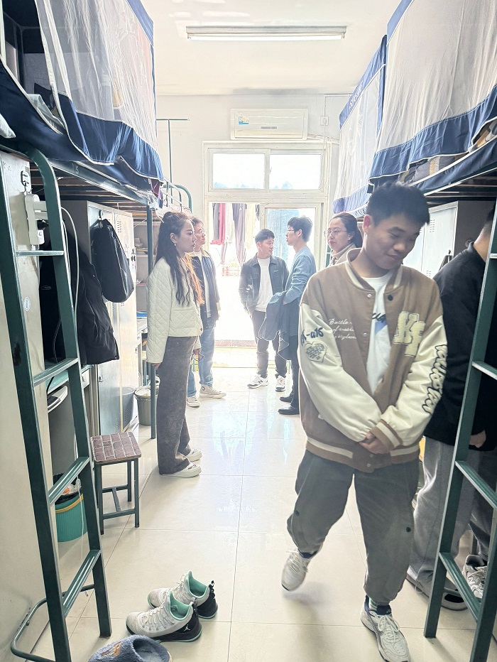 此次走进宿舍,老师们对宿舍的卫生清理、整洁程度以及寝室的用电安全等方面进行了仔细检查,同学们也积极配合工作。春季为传染病多发季节,走访中,老师们希望同学们一定要注意宿舍安全干净整洁,维持良好宿舍环境,养成良好的生活习惯,勤开窗通风,定期消毒,做好个人卫生防护。此外着重对各宿舍的用水用电等方面进行了安全隐患排查,与同学进行交流谈话,嘱咐同学们一定要注意消防安全,发现隐患苗头及时上报。