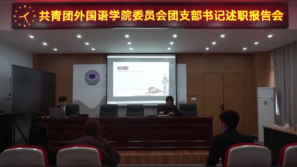 为了对2023年基层团支部建设工作进行回顾与总结,促进团支部书记之间的交流学习,3月25日外国语学院分团委在逸夫楼一楼会议室召开了2023年共青团外国语学院委员会团支部书记工作述职报告会。会议由学院分团委学生副书记季硕主持,分团委书记赵婷婷做现场点评,学院全体团干部及部分党员代表、学生代表参加了本次会议。