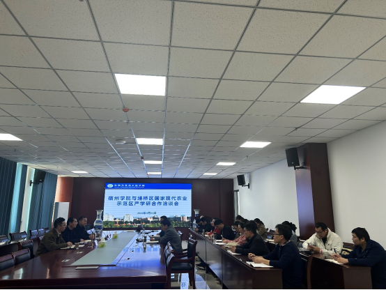 为了深化校地合作,推动产学研一体化发展,2024年3月21日下午,埇桥区国家现代农业示范区党工委委员、管委会副主任崔漓江,产业发展部部长候祥辉,以及产业发展部工作人员朱毅一行三人来到生工学院进行实地走访,并开展了产学研合作洽谈会。生物与食品工程学院院长张兴桃、科研副院长翟科峰、教学副院长王海潮以及相关研究方向的博士教师参加了此次会议。