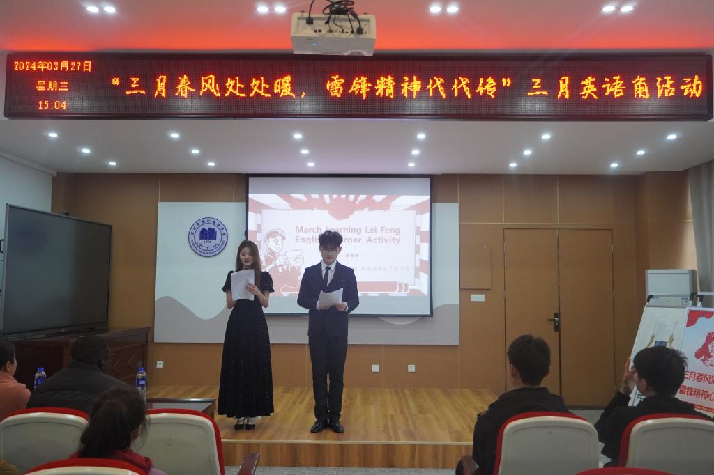 为加强英语交流,深入学习和传承雷锋精神,外国语学院于3月27日联合环测学院在逸夫楼一楼会议室举办主题为“三月春风处处暖,雷锋精神代代传”英语角活动,外国语学院分团委书记赵婷婷、环测学院分团委书记杨雯和外籍教师Thierry应邀参加。