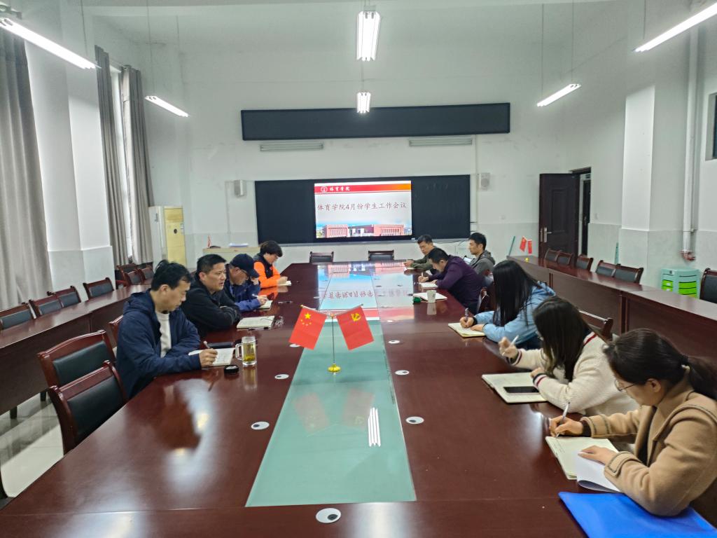 4月2日,体育学院召开4月份学生工作会议。院领导、院办公室、院团委、学生事务管理科、各年级辅导员参加会议。会议由院党委书记李高主持。