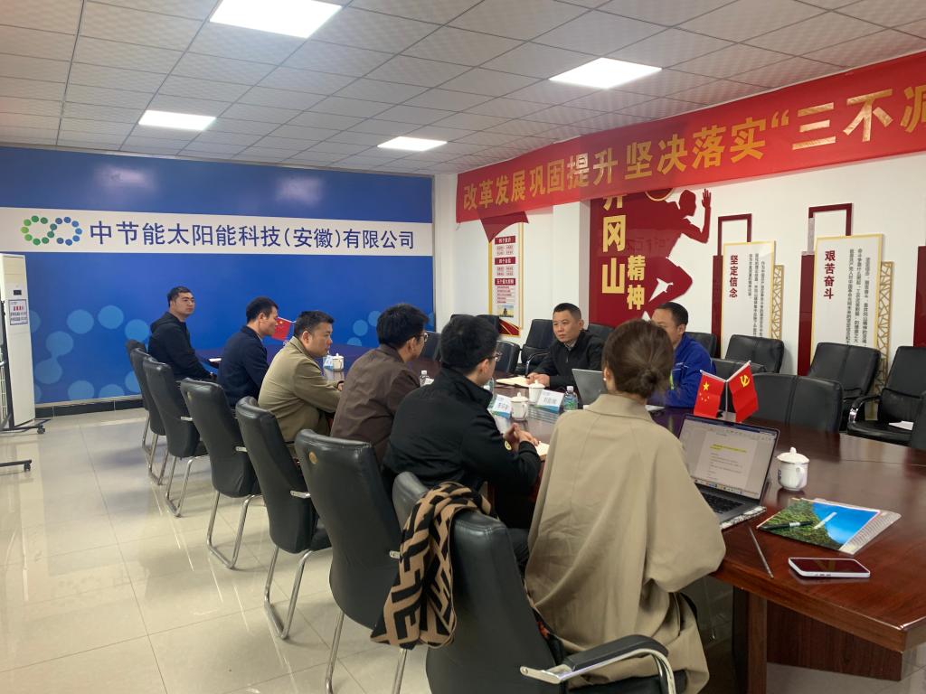 随后在于灿引领下,张海洋一行参观了中节能太阳能科技(安徽)有限公司的党建活动室、水上漂浮式光伏电站及其监控室。最后,三方与会人员就大会实地调研线路、水面光伏电站项目介绍与考察等相关事宜进行了充分交流。