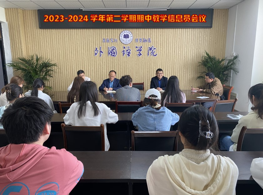 为深入推动学生参与教学管理,增强教学质量监控与信息反馈的实时性与有效性,外国语学院于2024年4月10日中午12:30在逸夫楼A318会议室召开了2023-2024学年第二学期期中教学信息员会议。此次会议由外国语学院副院长胡永近主持,书记郝景东、副书记张亚锋、实习实训中心主任王培培、教务员刘玮及各班教学信息员参会。