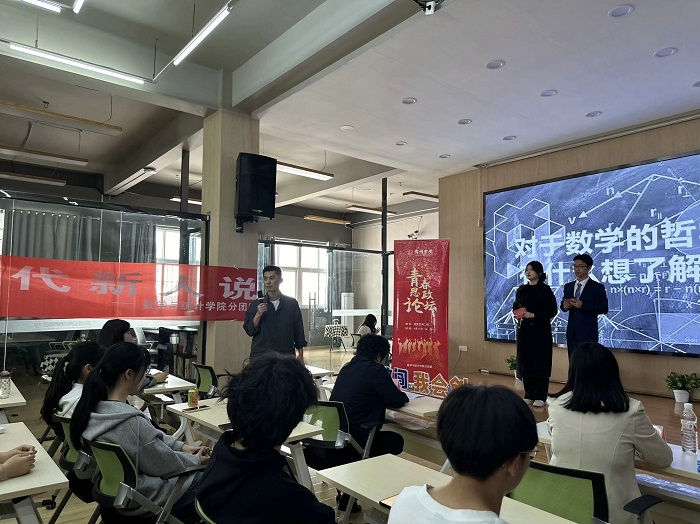 为了培养学生的创造力、思维力、洞察力,提升青年思政素质,数学与统计学院分团委于2024年4月22日,在创客中心二楼报告厅举办了第六期青春思政论坛活动。本期论坛的主题是探讨“数学与哲学”之间的深刻联系,吸引了众多师生的关注和参与。