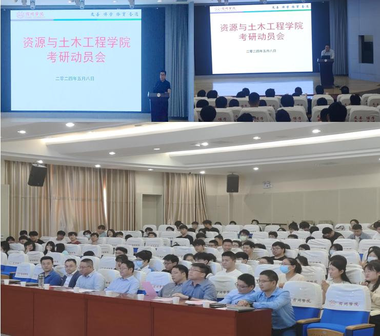 为充分调动学院学生考研的积极性,帮助学生了解考研形势、明确考研目标、增强考研信心,进一步推动学院的学风建设。2024年5月8日下午,资源与土木工程学院在工科楼招聘大厅召开考研动员会。学院党委书记张持堂、党委副书记、纪委书记徐国庆、科研副院长王明梁、教研室主任、专业课教师、启航考研规划指导团队成员、辅导员及全体有考研意向的同学参加动员会,会议由徐国庆主持。