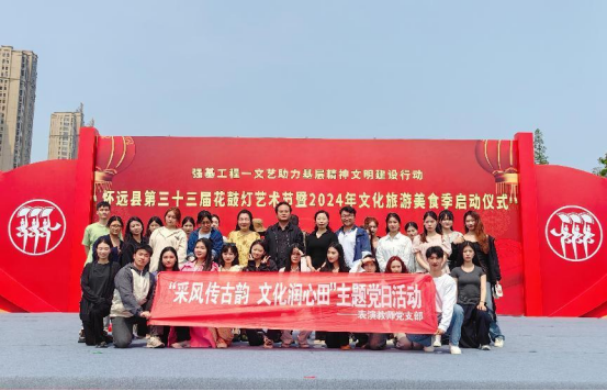 在怀远县“第三十三届花鼓灯艺术节暨2024年文化旅游美食季”启动仪式现场,师生们观摩了一场精彩的花鼓灯表演。演员们舞动着手中的鼓,挥洒着汗水,鼓点清晰有力,舞姿优美协调。同学们不仅为民间艺人们的专业技艺折服,也为花鼓灯这一民间舞蹈蕴含的地方文化魅力深深吸引,更深的了解了这一国家级非物质文化遗产。在蚌埠市艺术研究所,师生党员与艺术研究所的专家们进行了深入的交流。蚌埠市艺术研究所的所长鲍思懿代表大家对音乐学院的到来表示了热烈的欢迎。双方分享了在艺术创作和研究中的心得体会,以及如何将传统文化精神融入到自己的工作中。此外,双方对以后如何在专业人才培养及专业建设等方面进行合作,进行了进一步的交流和探讨。