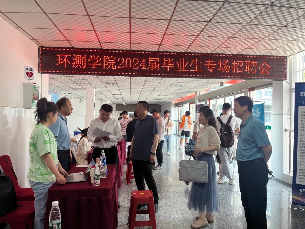 为帮助2024届毕业生落实就业去向,5月18日上午,环测学院在教育园区工科楼一楼举办2024届毕业生专场招聘会,招就处副处长李金莲来到招聘会现场指导毕业生就业工作。环测学院党委书记胡冰,党委副书记、院长张海洋,党委副书记、纪委书记李建新,毕业班辅导员,2024届毕业生参会。