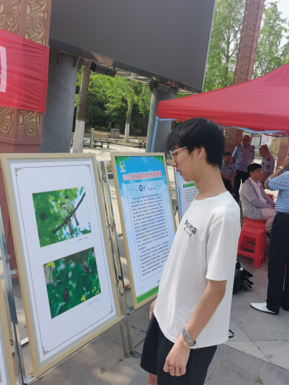 活动现场,学生积极参观鸟类摄影作品、我院联合环测学院制作生物多样性知识、相关文件政策及环保法律法规展板等,向过往市民宣讲生物多样性保护知识引导居民自觉遵守野生动物保护法律法规和有关规定,不非法买卖、食用或使用野生动植物,自觉履行新时代公民生态环境保护责任,倡导绿色低碳的生活方式,营造保护环境,爱护自然的良好社会氛围,同时制定保护生物多样性倡议书,现场向工作人员、志愿者、骑行人员以及过往游客发放保护生物多样性倡议书500余份。同时我院学生积极参与进现场保护生物多样性知识竞赛活动中来,赢得小礼品。