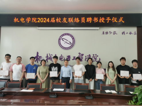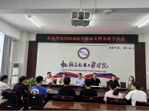 5月22日上午,机电学院在学院会议室举行2024届校友联络员聘书授予仪式,机电学院党委副书记、院长林永,各毕业班辅导员及校友联络员参加了仪式。