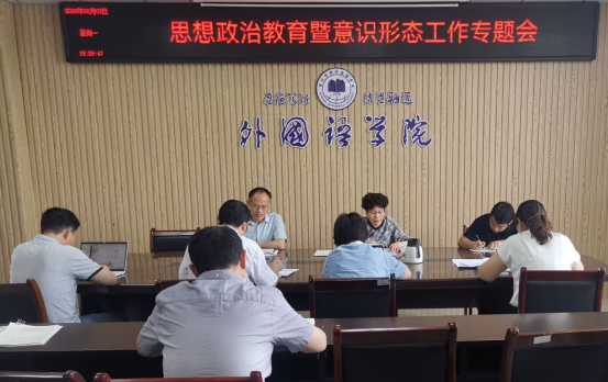 6月3日下午,外国语学院在逸夫楼A318会议室召开思想政治教育暨意识形态工作专题会,学院党委委员、全体科级干部以及教研室主任参加,会议由党委书记郝景东主持。