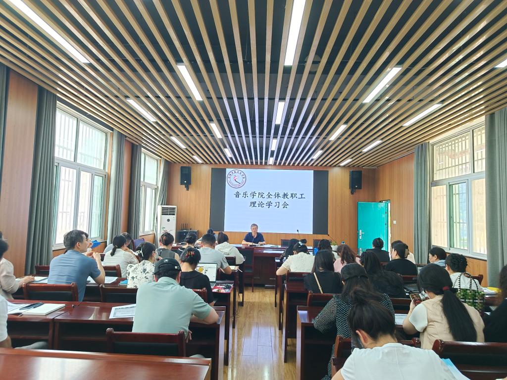 2024年6月5日,音乐学院在会议室召开教职工理论学习会。党委书记徐强,党委副书记、纪委书记李小娜,副院长钦媛以及全体教职工参加了会议。会议由徐强主持。
