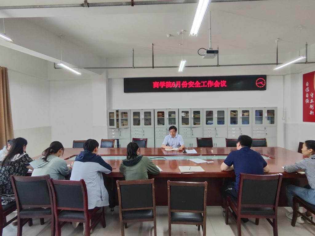 6月7日下午,商学院在实训楼B507会议室召开六月份安全工作会议,学生事务科负责人、实习实训中心主任、教学秘书以及全体辅导员参加了本次会议。会议由院党委副书记、院长刘红军主持。