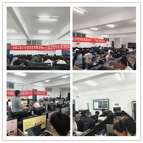 为了加强学生们的专业技能训练,确保教育内容与市场需求的同步更新,信息工程学院邀请安徽兰智大数据科技有限公司、合肥一元数智教育科技有限公司、上海新魁教育科技有限公司、无锡极客信息技术有限公司参与课程实训,旨在通过校企合作提供实践平台,最终达到提升学生就业竞争力的目的。四家企业对此次合作表示高度重视,派出了由资深工程师和管理层组成的专业团队参与实训指导,并提供了先进的技术设备和实际案例供学生们操作和研究。
