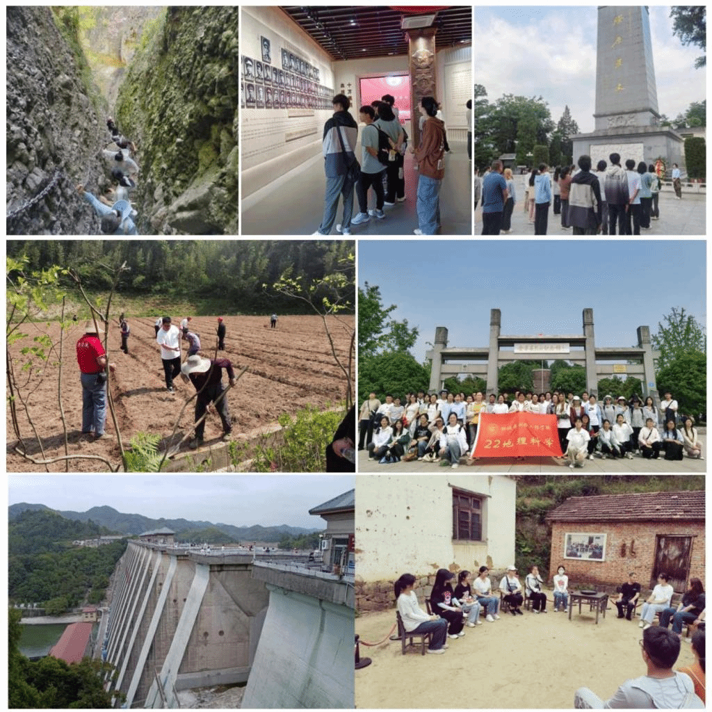 大别山因其独特的自然景观——“山之南山花烂漫,山之北白雪皑皑,此山大别于他山也”而得名,成为江淮地区的分水岭。本次实习的第三阶段已于5月29日圆满结束。大别山历经亿万年演化,造就了如今的雄浑壮丽之景。在实习期间,同学们穿梭于大别山山前沉积的皖西大裂谷,耳畔似乎回响着刘邓大军千里跃进大别山的枪炮声;在革命老区金寨,同学们举行了向革命烈士纪念塔敬献花篮的仪式,在庄严的国歌声中,寄托了对革命先辈的深切哀思;随后,大家参观了金寨县革命博物馆,无声的驻足仿佛在向先烈述说,逝者已安息,如今的山河无恙。同学们还参观了新中国建造的当时世界上最高的混凝土连拱大坝——梅山水库,仿佛能感受到当年奋斗者的激情岁月;在大湾村陈泽申家门前,依稀可见习近平总书记与村民共谋脱贫攻坚的身影……通过此次实习,同学们深刻感悟到历史的积淀,领略了老一辈无产阶级革命家和革命先烈的丰功伟绩和崇高精神,体会到了国家富强的自豪。大家纷纷表示,要努力学习,探索真理,不断前进;要继承先烈遗志,坚定理想信念,永远跟党走,为实现中华民族伟大复兴的中国梦而努力奋斗。